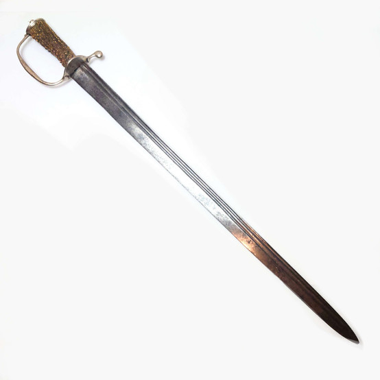 The blade is a hefty blade reminiscent of a short broadsword with a pair of double fullers terminating in a spear point. The blade still bears quite a lot of an edge but has lost the very tip of its point.
