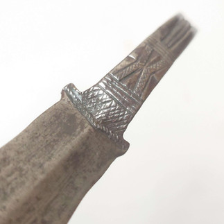 These fascinating pieces are daggers used by the Tiv people of what is now Nigeria. These are very similar to bichawa's as they are worn around the knuckles and used in conjunction with a thumb ring to firstly help draw a bow but also to give an archer an offhand weapon that can be kept in the hand. This dagger can be yours for £240 or best offer.