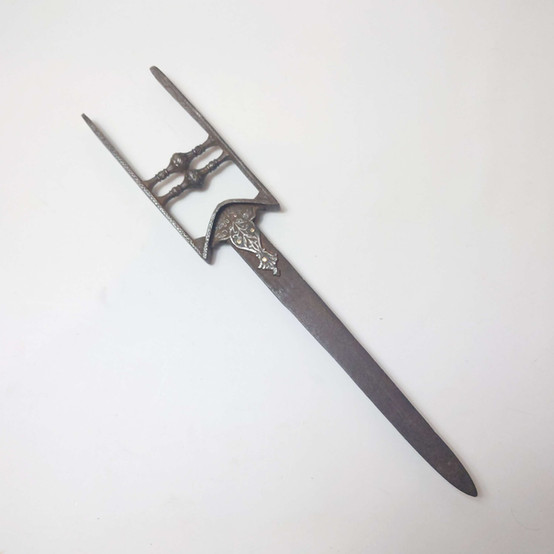 The design of the hilt and the ball like grips are part of a style that points to older katars. The decoration and the use of a foreign blade show this to have originally been a prestigious piece.