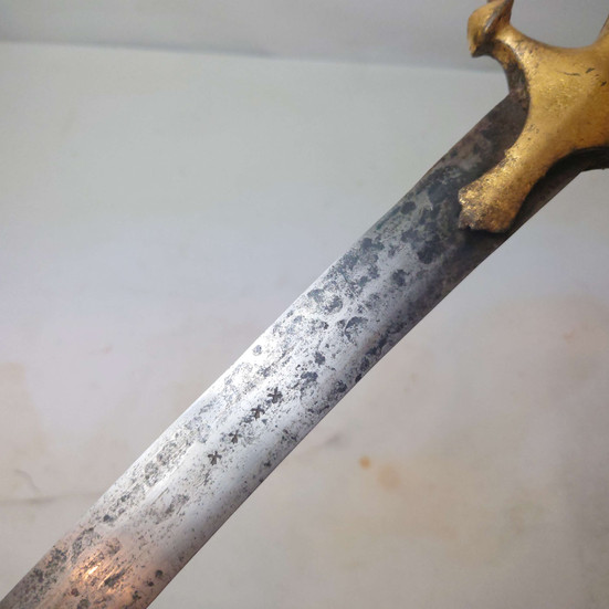 A Lucknow hilted tulwar from the mid to late 18th century with a nicely gilt hilt. The most interesting part of this piece is the 17th century imported Italian or German firanghi blade, I suspect Italian as it has the same profile as a few storta blades I have studied which I imagine would be very attractive to the Indian warrior at the time. This piece can be yours for £450 or best offer. Order Code: TTSG2174
