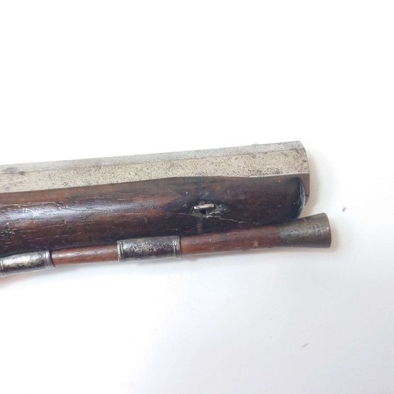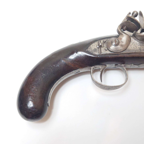 A good example of a British military pistol dating to the late 18th century, this is the kind of firearm that would have been carried by a British officer on campaign against the French, long enough to have some accuracy but compact enough to be carried with ease.