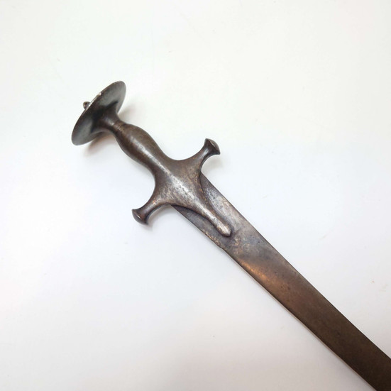 A rather pleasant childs tulwar from the early 19th century, this sword is well formed but plain and in good condition for its age with a clean even patina. The blade is evenly curved and well sharpened with a diminutive but nicely made hilt.