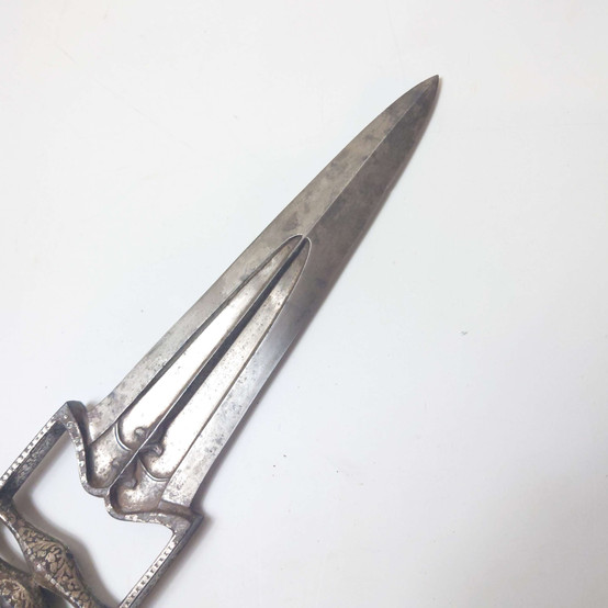 The katar is in generally good condition but could use some minor cleaning, there is some damage to the upper end of the sheath.